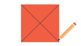 To start, cut out a square of paper the size you want for your gift box. Connect the 4 corners to form an X. Make sure they are exactly centred.