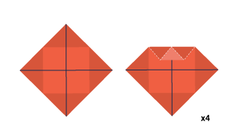 Fold the top, smaller triangles over the side triangles. Once they have been folded in, fold the two side triangles that are still intact. They should be fully folded till the cut is reached.