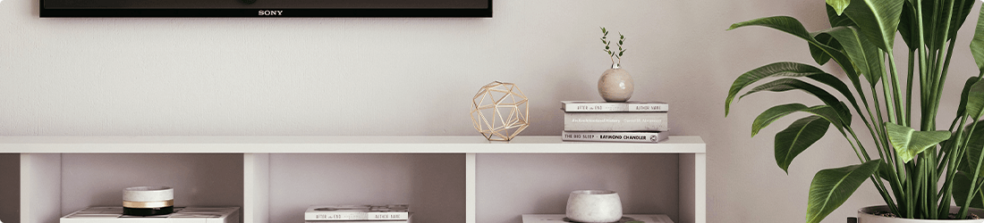 Start by considering your TV size, to see which stand is more appropriate. Then try to visualise how the TV stand fits your room. Find options suitable for the size of your room, to achieve a balanced décor. Don’t overlook your design preferences – think of what colour should your TV stand be. For the right blend of styles, pay attention to what material your TV stand should be.