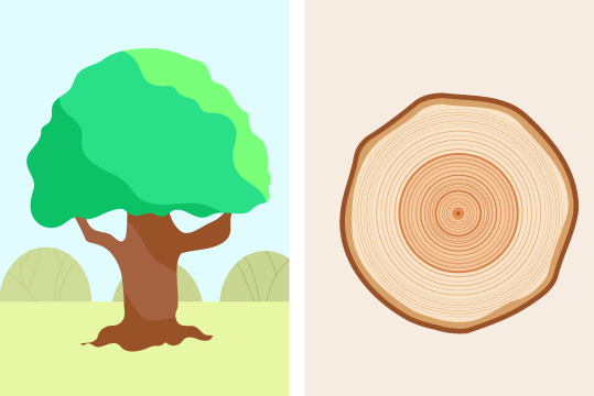 Hardwood comes from trees with leaves and seeds, such as oak, maple, mahogany, and walnut. Unlike softwood, which comes from evergreen trees, hardwood is more resilient. This is because they grow slower and have a more compact structure, so the wood is denser. Bamboo (which is a treelike plant) and palm share the same characteristics as hardwood. You can sometimes find them under the engineered wood label.