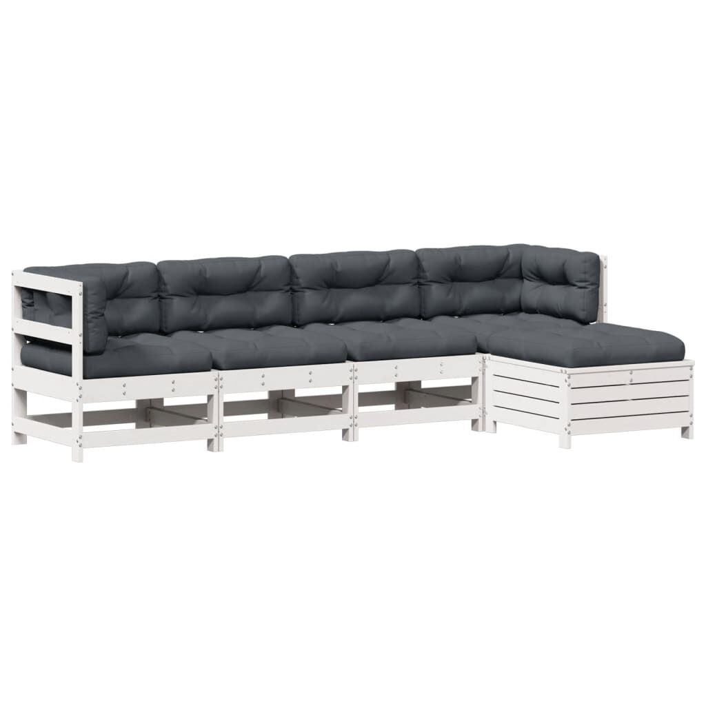 vidaXL 5 Piece Patio Lounge Set with Cushions White Solid Wood Pine