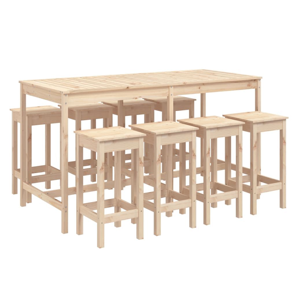 This 9-piece outdoor garden bar set adds a rustic touch to your outdoor space, making it perfect for hangouts. With a natural pine finish, it mixes style and functionality, creating a lovely spot for dining and socializing in your garden or balcony. It fits up to eight folks, ensuring everyone can enjoy together while soaking up the fresh air.