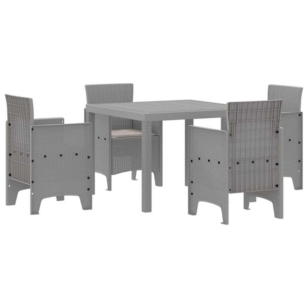 This modern garden dining set brings sophistication and functionality to a variety of outdoor spaces. Perfect for terrace or garden dining, this set combines sleek lines with a textured finish to provide a stylish dining experience. Ideal for summer gatherings and alfresco dining, this set invites convenience and comfort, featuring cushions for each seat. The square table and matching chairs easily complement contemporary designs, offering an elegant, yet casual setting for family meals or social gatherings.
