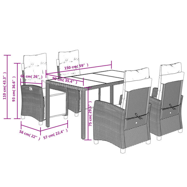 This lovely 5-piece garden dining set blends elegance and usefulness, making it a great pick for outdoor feasts. Sporting a stylish grey poly rattan design with solid acacia wood accents, this set brings a modern vibe that perks up any patio or garden space, giving comfort as you share meals with family and pals.