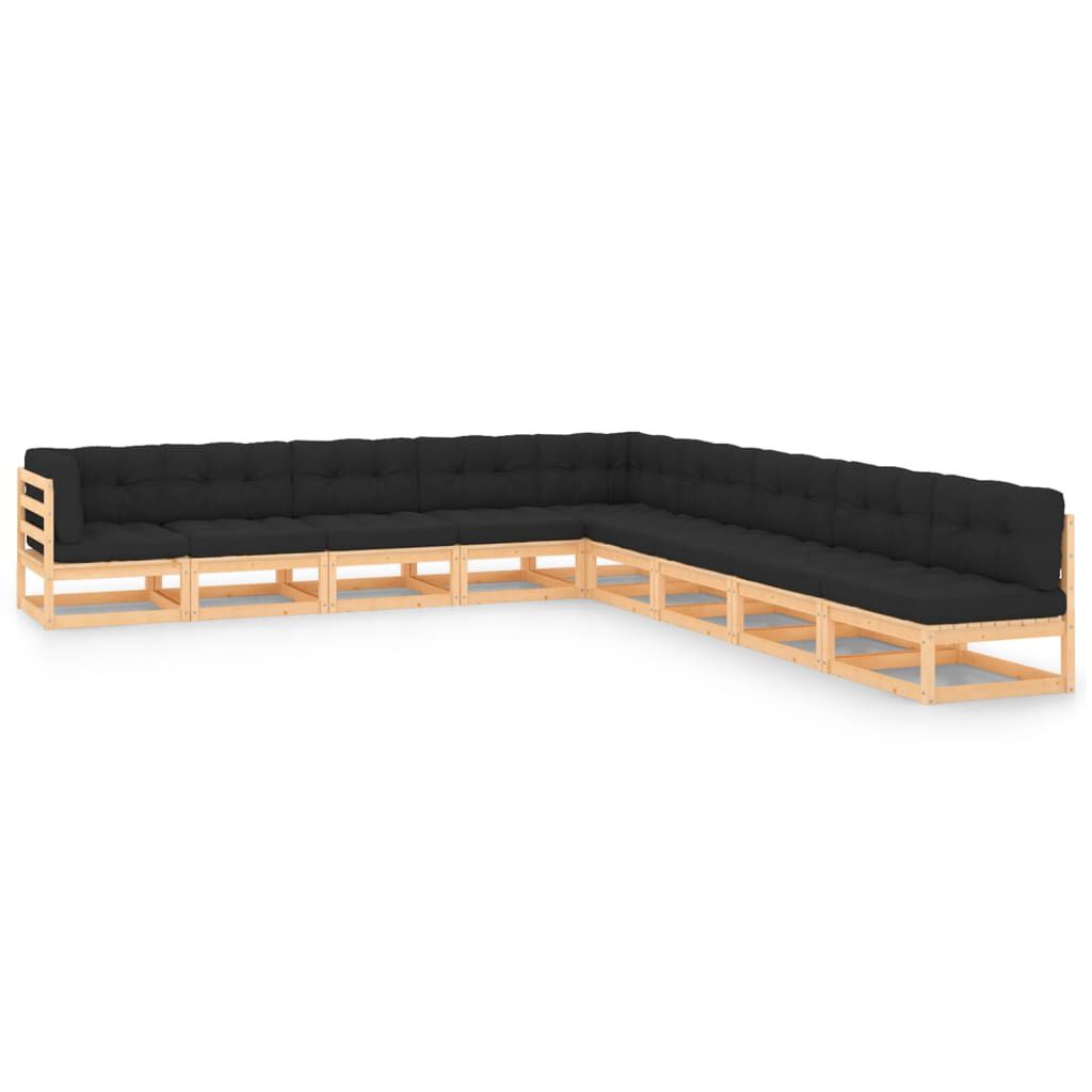 This 9-piece garden lounge set is the perfect mix of style and practicality, making it a great fit for any indoor or outdoor area. Made from solid pinewood, this lounge set gives off a rustic vibe while offering a comfy spot to kick back and chat, making it just right for gatherings or lazy afternoons.
