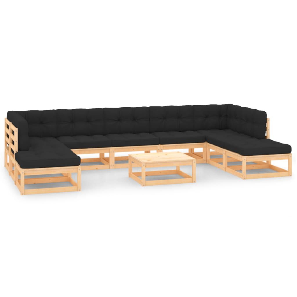 This 10 Piece Garden Lounge Set is a sweet combo of function and rustic charm, perfect for outdoor hangouts and relaxation. Made from solid pine, it features lovely natural wood tones with anthracite cushions, setting a welcoming scene for family and friends while enhancing any terrace or sunroom.