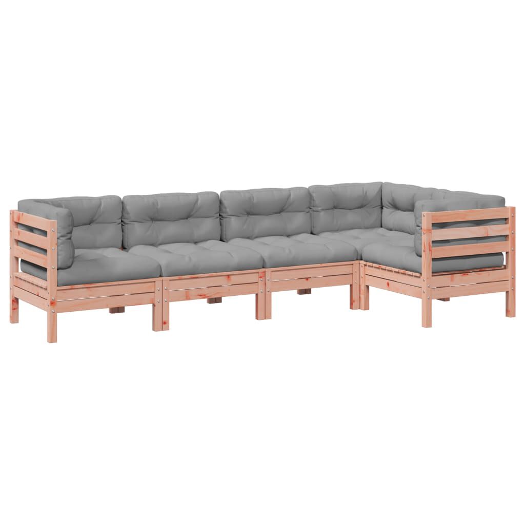 This 5-Piece Garden Sofa Set adds a touch of elegance to your outdoor space, mixing comfort with rustic charm. Made from solid Douglas fir wood and soft Oxford fabric cushions, this set offers a warm seating area for family and friends to enjoy long evenings in the backyard, terrace, or balcony, all while looking stylish.