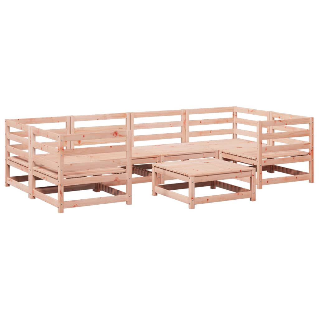 This 7-piece modular garden sofa set is a fantastic addition for outdoor areas, designed for both comfort and style. Made from solid Douglas Fir wood, it looks sharp and lasts, making it spot on for chilling out or hanging out.