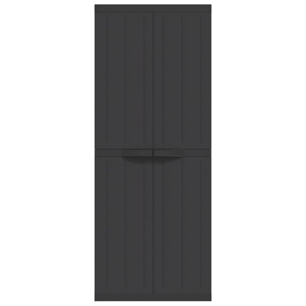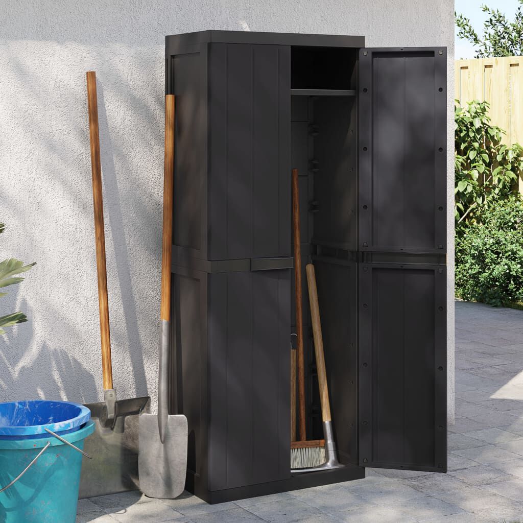 This outdoor storage cabinet combines style and functionality, effortlessly enhancing your garden or balcony space. Crafted from high-quality polypropylene, this sleek cabinet is designed to withstand the elements while providing ample space to store garden tools, supplies, and more, ensuring they remain organized and protected.