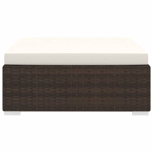 Thanks to the weather-proof and waterproof PE rattan, the footstool is easy to clean, hard-wearing and suitable for daily use. The seat features a sturdy powder-coated steel frame, which is highly durable. It is also lightweight and modular, which makes it completely flexible and easy to move around to suit any setting. The thick, removable cushions are highly comfortable. You can combine it with other corner and middle seating and create your personal garden sofa configurations.