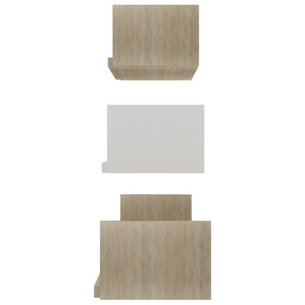 This floating shelf set elevates your wall space with a sleek design, featuring three elegantly arranged shelves in shades of white and Sonoma oak that blend seamlessly into any interior. Ideal for showcasing decorative items, books, or memorabilia, these shelves provide an enchanting visual appeal while maintaining functionality, making them a sophisticated addition to living rooms, bedrooms, or offices.