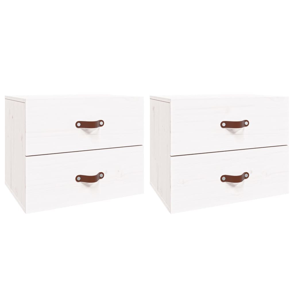 This wall-mounted bedside cabinet set mixes function with rustic charm, giving you an elegant way to store things in your bedroom. Made from solid pine wood, these cabinets have a sleek, white finish that fits a range of decor styles while being tough and reliable for every day.