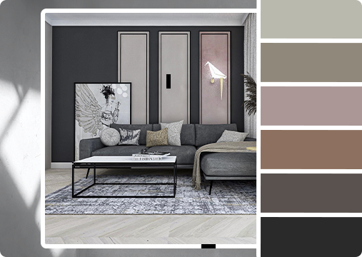 The industrial style colour palette is defined by muted tones and raw finishes. Shades of grey, black, and brown, along with metallic accents, create a rough and modern feel.
