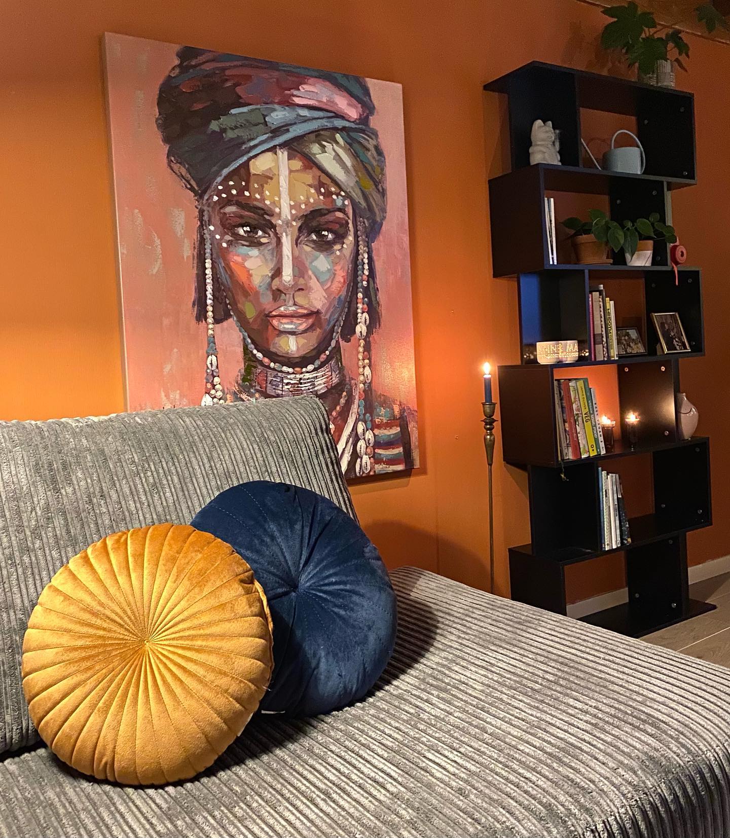 ♥ Pro tip: Using books, memorabilia, and family photos to bring splashes of colour to a room is the simplest way to do so. Plants and fresh flowers are also essential in a welcoming and vibrant décor.
